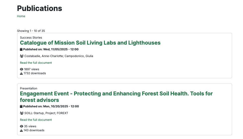 The Publications Library gives you open access to all publicly available SOILL outputs and materials. The collection spans a wide range of document types, including the Catalogue of Mission Soil Living Labs and Lighthouses, event slides and posters, factsheets, success stories, monitoring and evaluation guidelines, qualitative assessment questionnaires, and key recommendations for the Living Lab community.