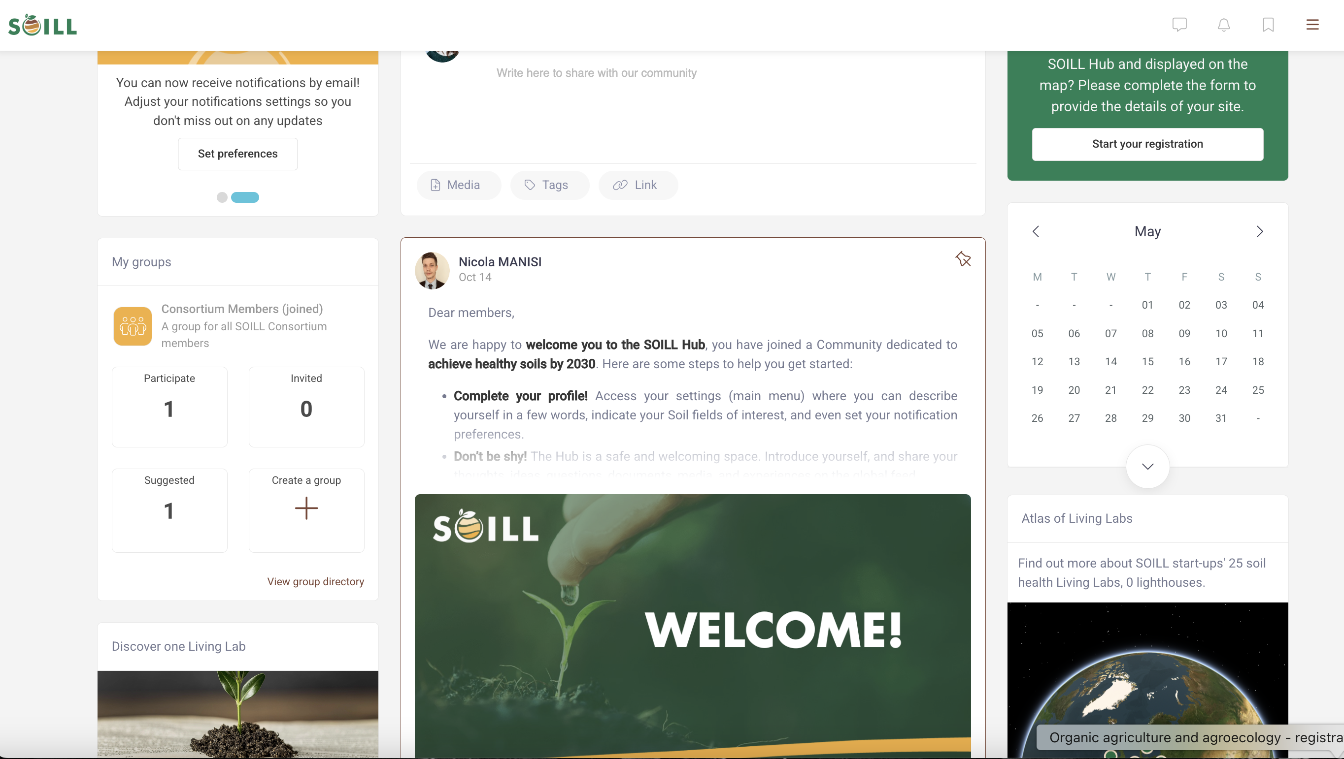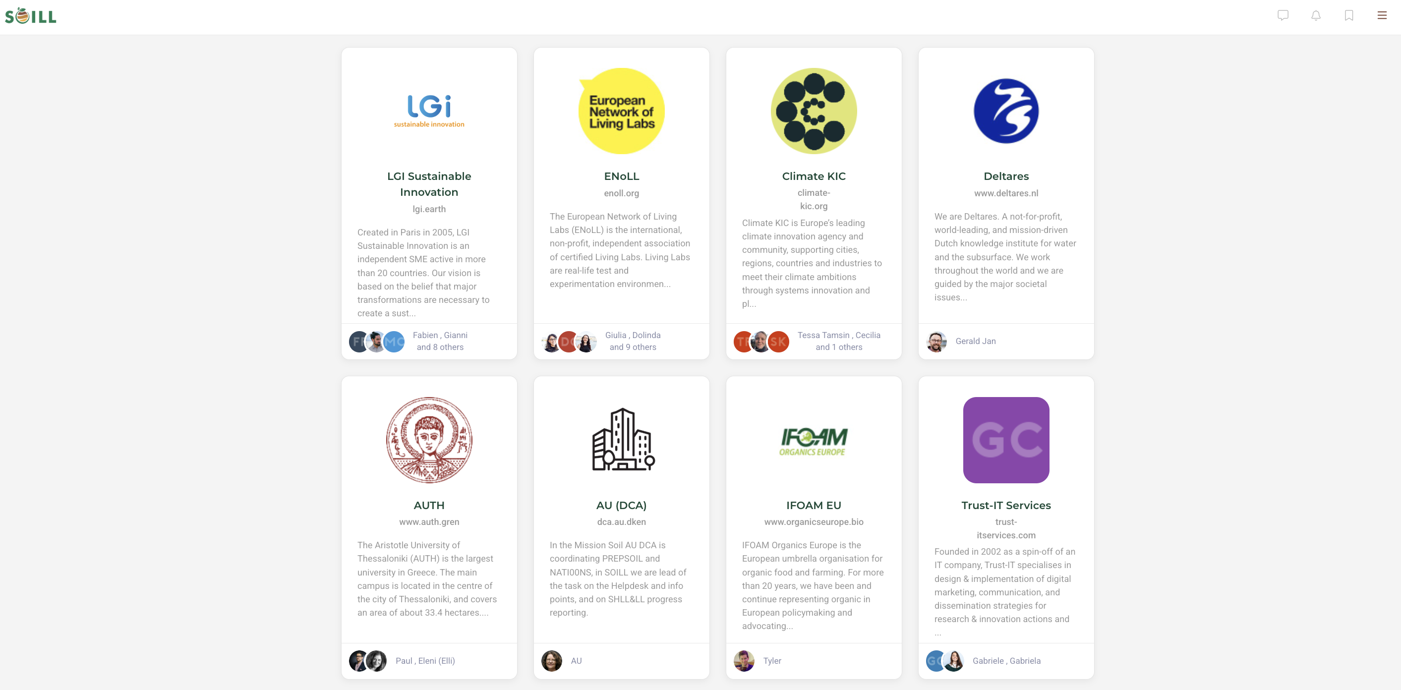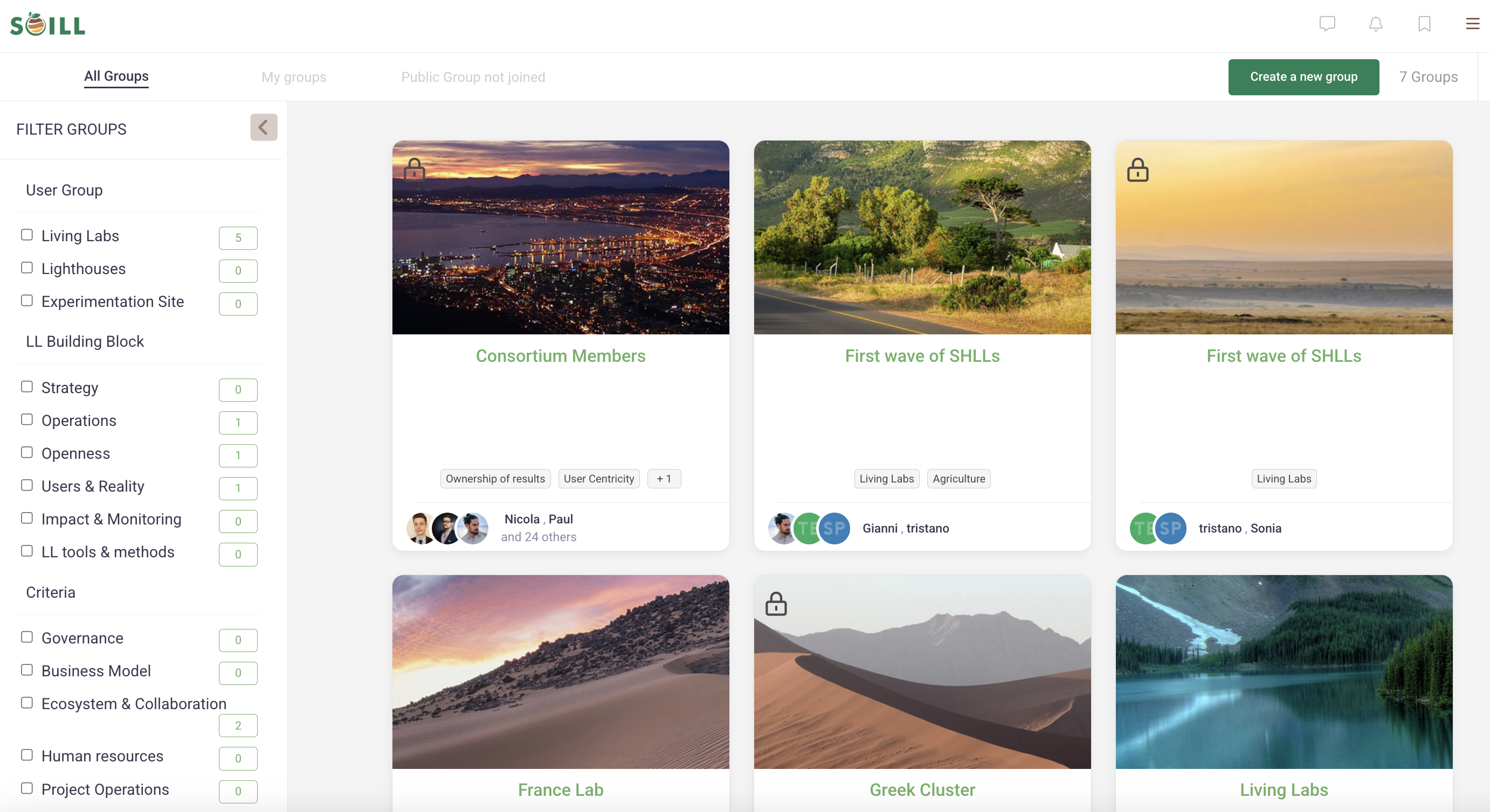 The SOILL Hub supports both public and private groups, allowing users to engage in focused discussions, share resources, and coordinate on specific topics. Groups can be created around themes, projects, or stakeholder interests and include tools for administrators to manage participation and content.