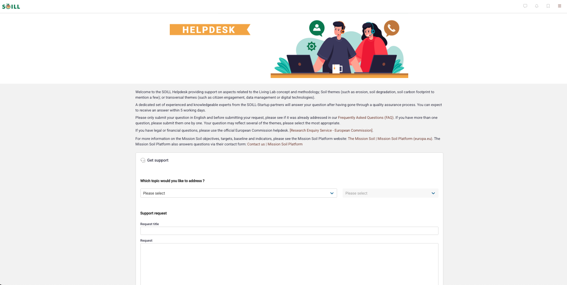 In addition, the platform incorporates a matchmaking tool to support the creation of partnerships and consortia. Stakeholders can present project ideas, receive feedback, and identify suitable partners. This feature builds upon the experience gained through the NATI00NS project and is being enhanced to better meet the needs of the SOILL community. The SOILL Hub also includes a dedicated Helpdesk, where users can submit questions related to soil themes, the Living Lab methodology, or transversal issues such as citizen engagement and digital technologies. Questions are reviewed by experts and answered through a structured process that ensures quality and relevance.